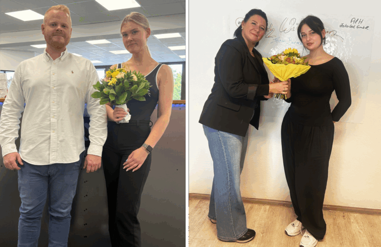 Wir freuen uns, Madleen und Lena-Sophie in den kommenden zweieinhalb bis drei Jahren begleiten zu dürfen – fachlich wie persönlich. Gemeinsam möchten wir sie fördern, fordern und unterstützen, damit sie am Ende ihrer Ausbildung bestens gerüstet sind für eine Karriere in der Personaldienstleistung.